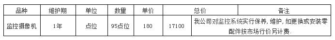 也就是每台监控摄像机单月15元/月,当然对于很多项目摄像机数量比较少,那么它的维护费可以适当提到,例如摄像机低于10台者,可以按每台30元每月计算。